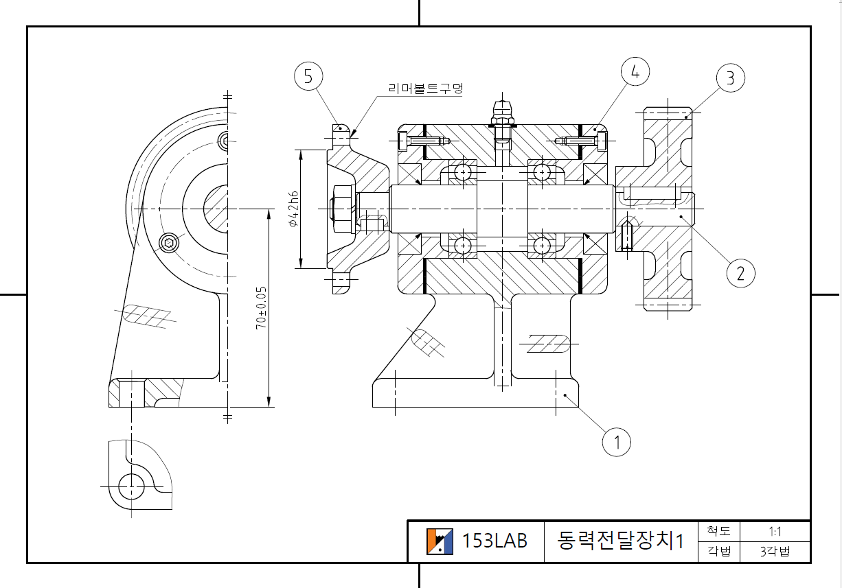 동력전달장치1이 목표가 아니라 과정이라는 것을 잊지 말고 KS규격, 치수, 공차 하나도 틀리지 않도록 연습하시기 바랍니다.