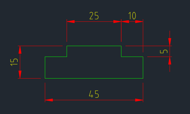 이제 위쪽 도형의 치수를 변경하겠다. 다시 그려도 되고, 스트레치(Stretch : 단축키 S) 명령을 사용하여, 세로 길이 7mm를 5mm로 변경한다.