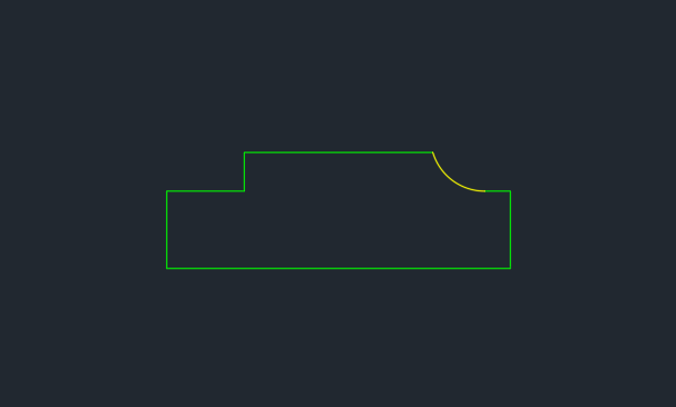 필렛(Fillet : 단축키 F) 명령을 실행하고, 반지름(R) 값은 7mm로 설정한 후 그림과 같은 두 개의 선을 선택하고 필렛을 적용한다. 필렛이 잘 만들어졌다.