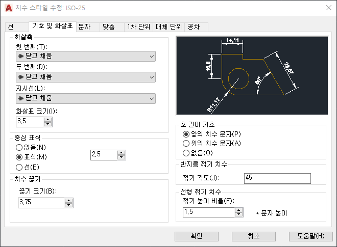 ※ 기본적인 치수스타일을 KS규격에 맞추어 바꿀 것이다.