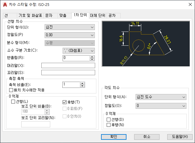 3. 치수 스타일 (Dimension Style) 설정 : ISO-25