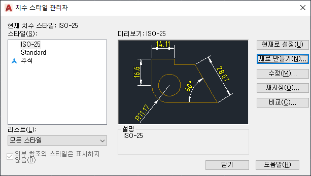 ISO-25 스타일을 선택한 후, 새로 만들기(N) 버튼을 클릭한다. (ISO-25 스타일을 복사하여 새로운 스타일을 만든다)