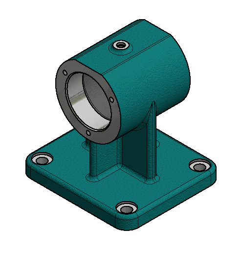 ① 본체 전체 부품들을 지지하는 프레임 역할하며, 본체의 하면을 테이블이나 구조물에 고정한다. 주조로 제작 후 밀링에서 하면, 좌우측면의 평면 절삭, 선반에서 베어링 장착부, 내경 절삭 및 모떼기, 밀링이나 드릴링머신에서 드릴링 및 태핑 가공, 연삭기에서 주요 공차부 다듬질 작업을 한다. 재질은 약간의 강도, 경도를 요하며, 복잡한 형상을 제작해야 하므로 재료는 주물 재료인 GC200(회주철)을 사용한다. |