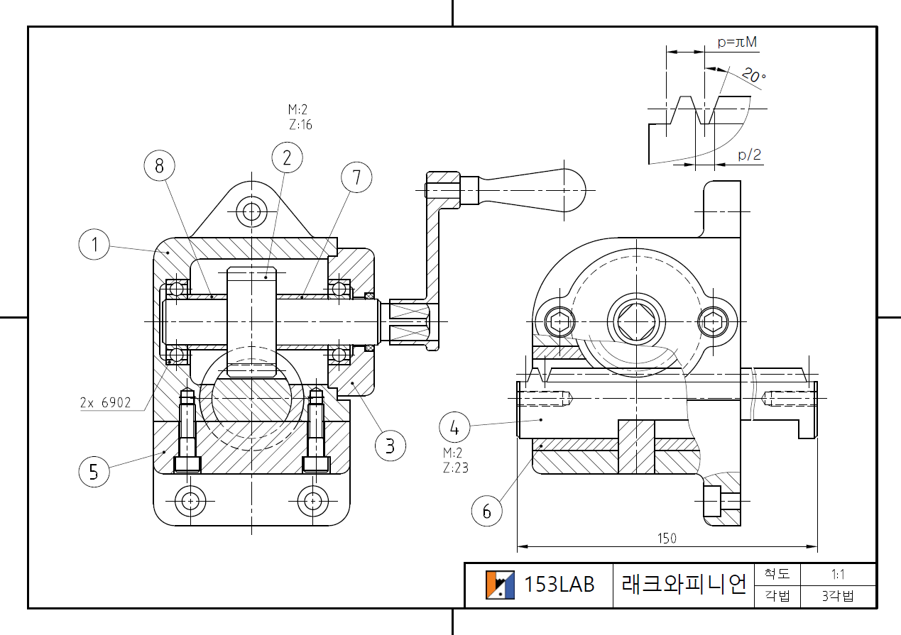 위 래크와 피니언_153LAB pdf파일을 받아 1:1(실제크기)로 출력하여 연습하세요.