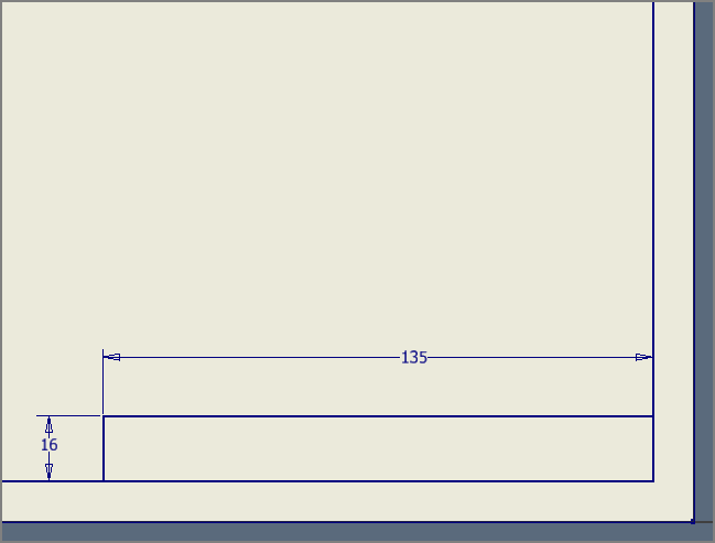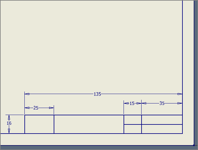 [직사각형]을 이용하여 도면 오른쪽 아래 구석에 사각형을 그리고, 치수기입을 한다. 가로 130 x 16