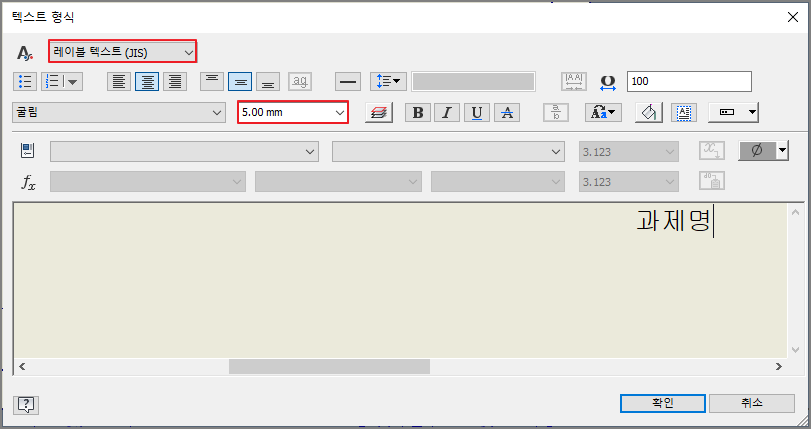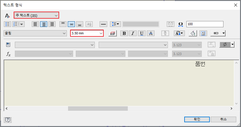 ② 표제란, 부품란 글자 입력