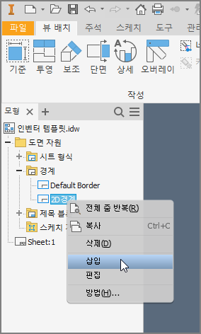 만들어진 경계 이름을 우클릭으로 선택하여 삽입을 실행한다.