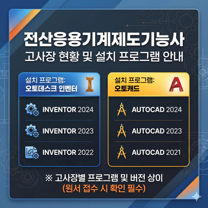 📌 보는 법 · 서울에서 가까운 지역 순으로 정렬되어 있습니다. 각 카드의 설치 장비를 미리 확인하고 본인 시험장에 맞는 버전으로 연습하는 것을 권장합니다. AutoCAD·Inventor 버전이 다르면 단축키와 UI가 약간 달라질 수 있어요.