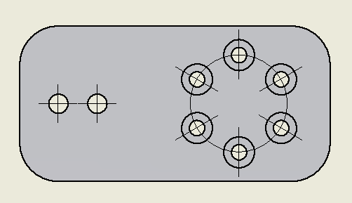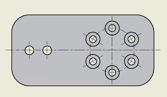 인벤터의 자동화된 중심선에서 가장 많이 사용하는 것은 아래 그림과 같은 옵션이다.