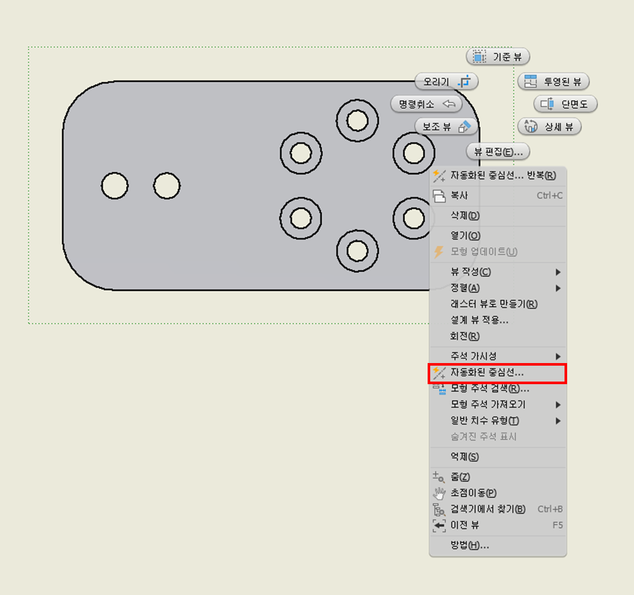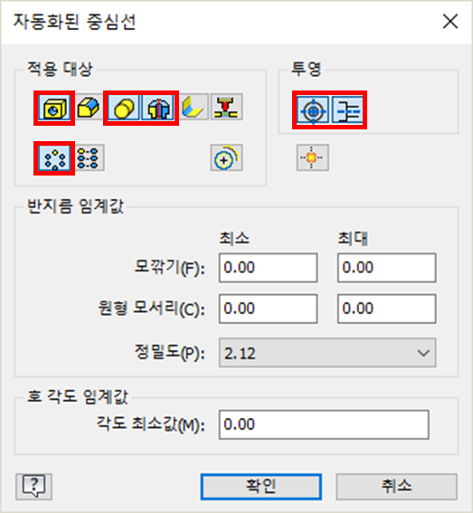 인벤터의 "자동화된 중심선" 기본 설정 변경하기