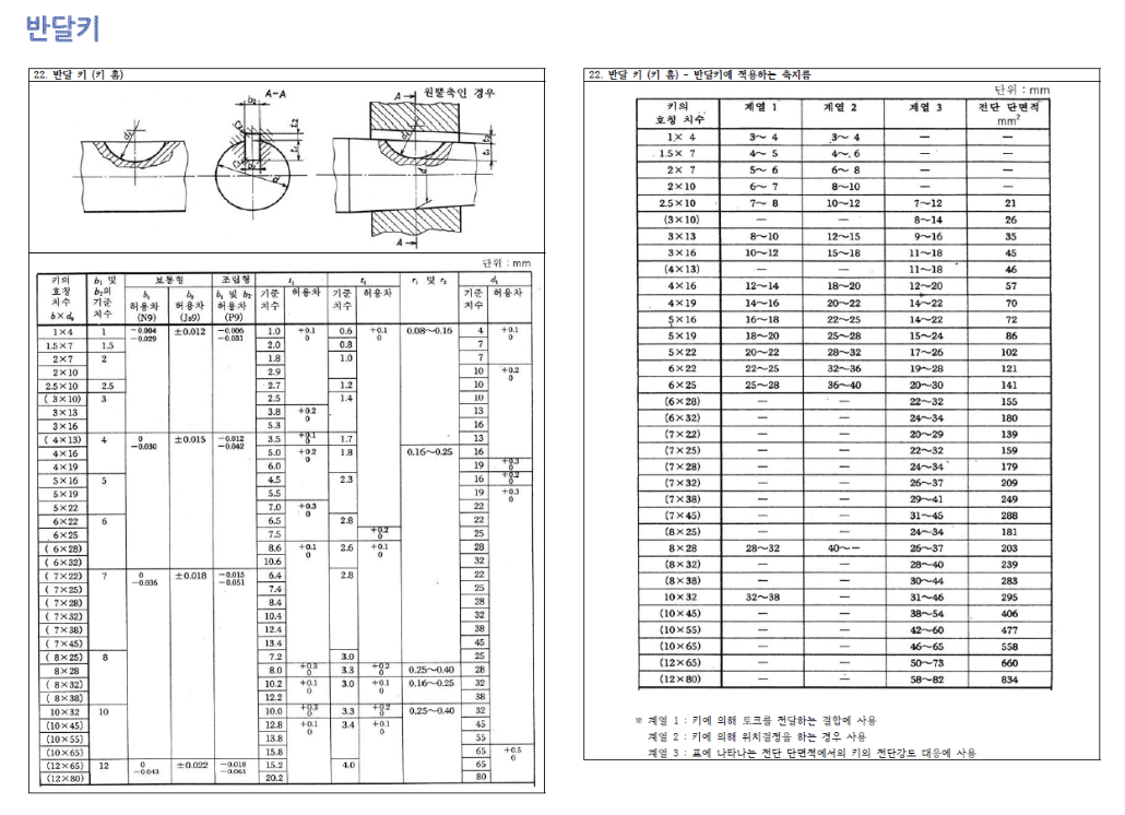 2022년 규격에서 필히 보아야 할 것은 2가지인데, (1) 반달키와 (2) 구름 베어링용 로크너트 와셔이다.