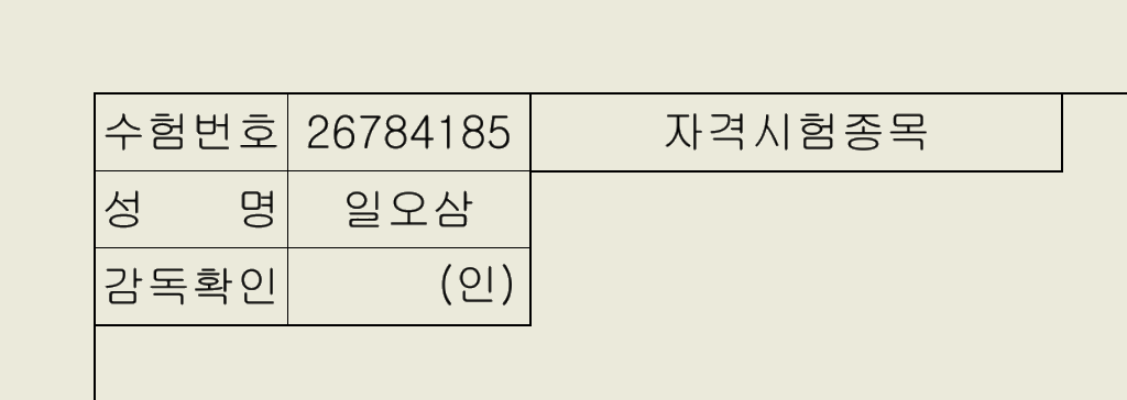 수험번호 나오면 매번 연습할 때마다 성명과 수험번호를 넣어 연습하시기 바랍니다. :)