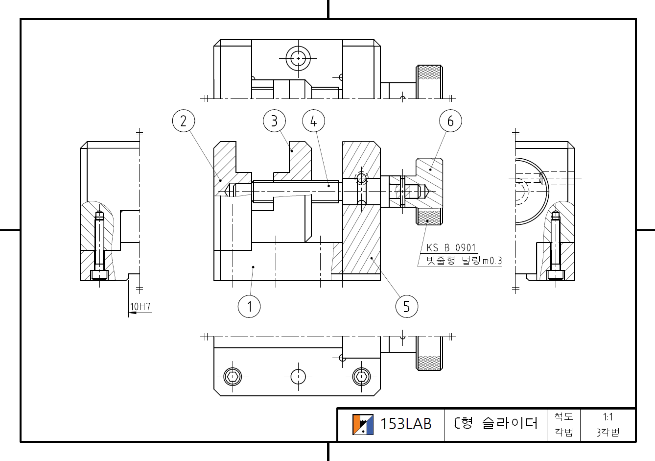 축이 아니라도 투상이 쉬운 부품부터 작도하세요.  잊지 마세요. 투상이 쉬운 것부터...