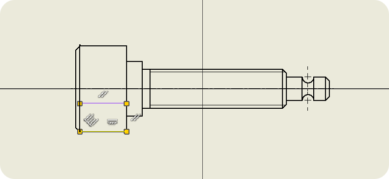 손잡이의 투상도를 배치하고, 한쪽 단면을 한 후, 중심선을 작도한다.