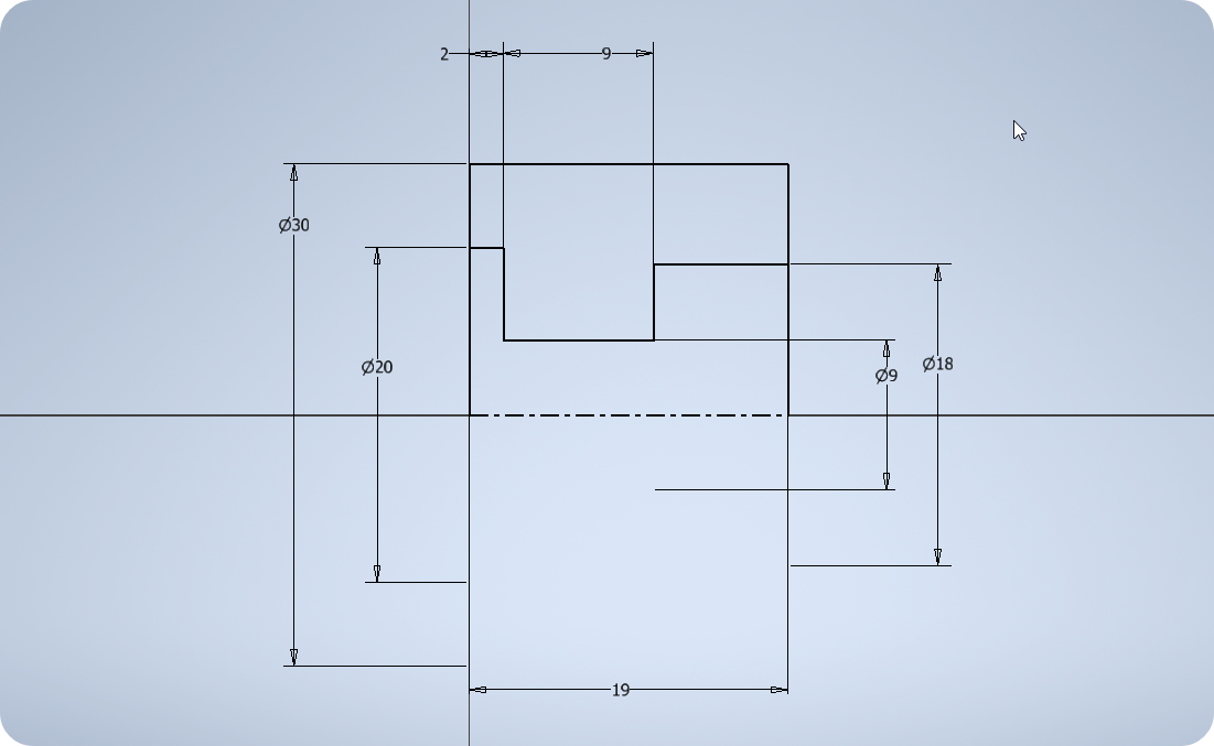 ① 인벤터(Inventor) - 스케치(Sketch)에서 다음과 같이 피스톤의 아우트라인을 작도한다.