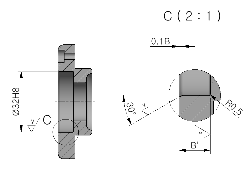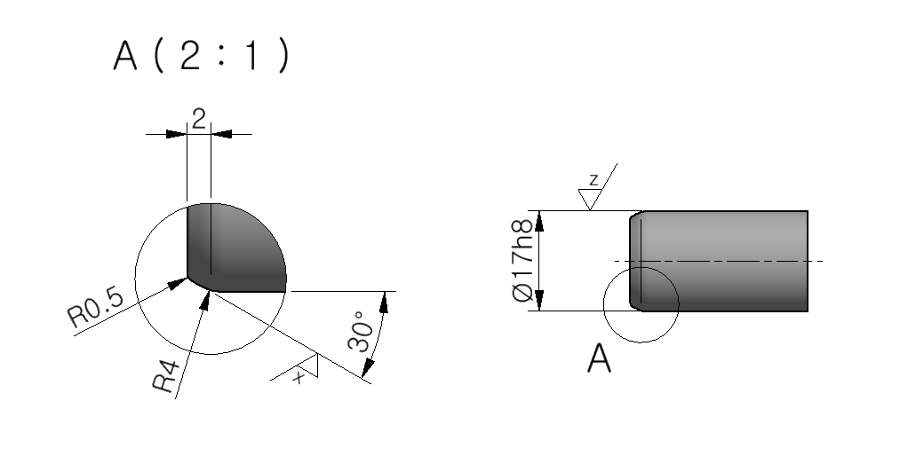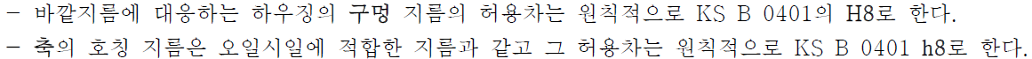 끼워 맞춤공차는 규격에 있는 데로 h8로 적용하고 오일실과 미끄럼 접촉하는 부분의 표면거칠기는 z로 한다.