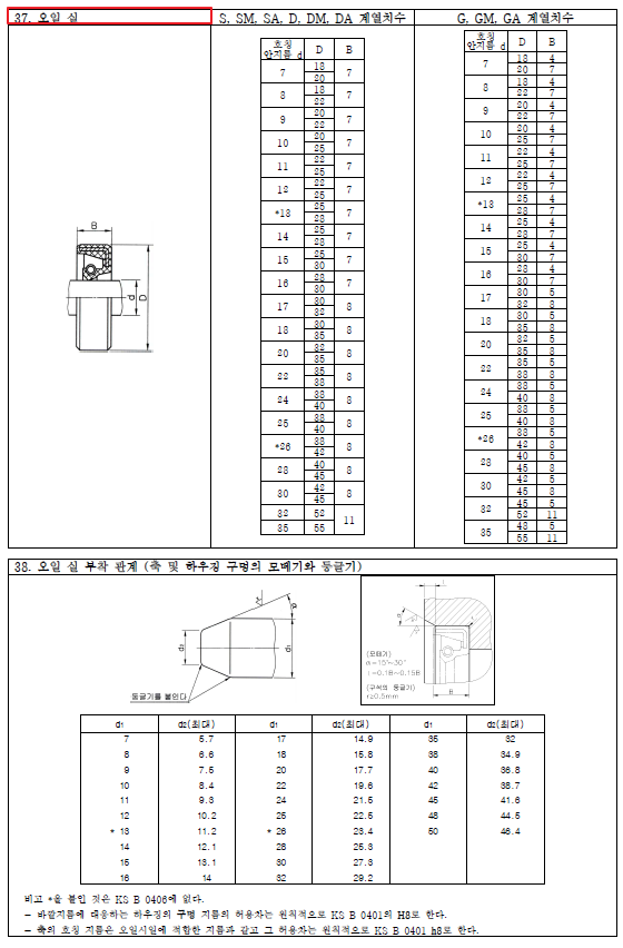 모델링과 도면작업에서 축과 구멍을 작업할 때 오일실 규격을 참고한다.