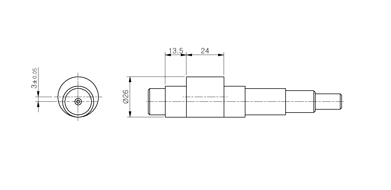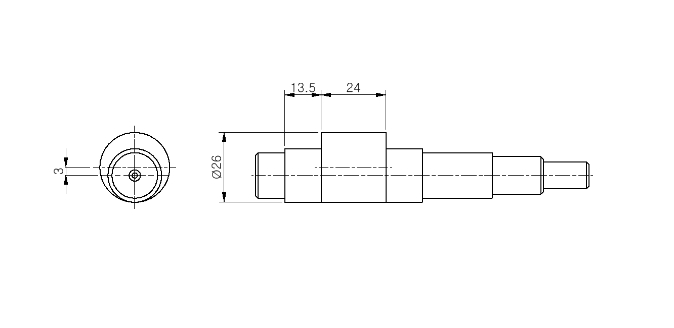 키홈이나 여러 가지 축에 있어야 하는 형상은 제외하고 축의 기본 형상에 센터구멍만 낸 단순한 모양으로 정리합니다.