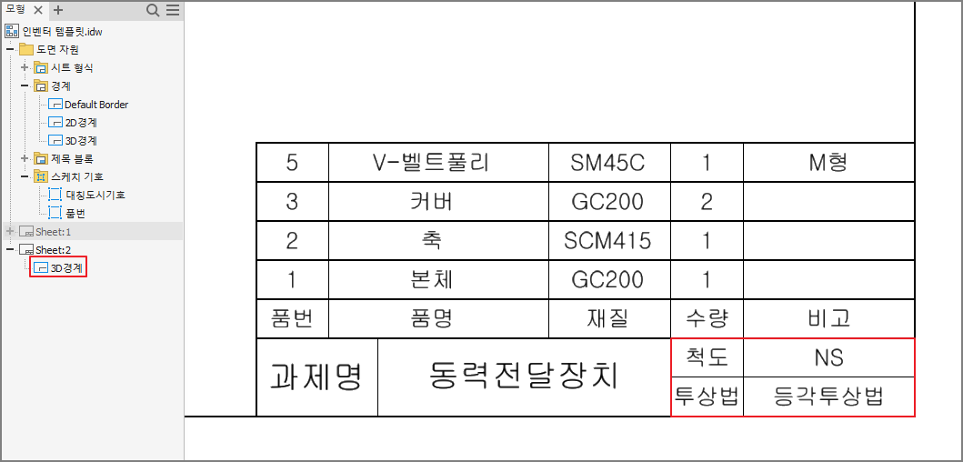 국가 기술 자격 CAD 실기 시험/인벤터 2D 템플릿(idw)