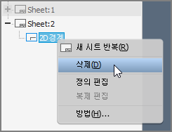 ③ 모형검색기에서 Sheet:2를 펼치고, 자동으로 삽입된 2D 경계는 삭제한다.