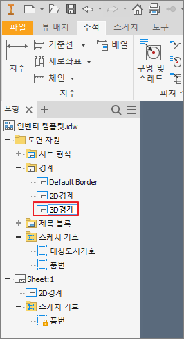 ④ 모형검색기의 [도면자원] - [경계]의 '3D 경계'를 우클릭하여 삽입한다.