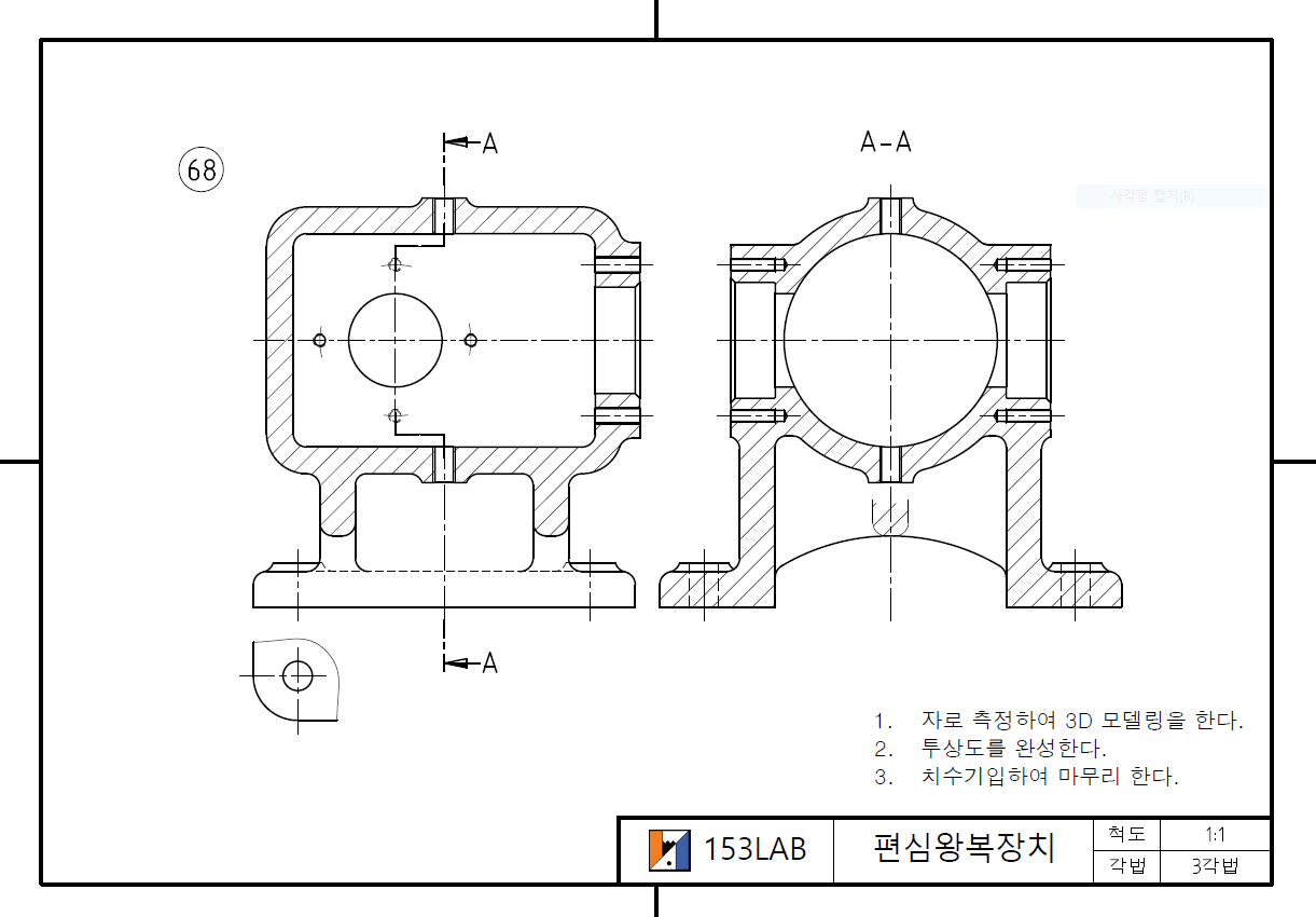 ( 4 ) - 주서 9. 주서 주서는 도면에 해당하는 사항만 기입해야 한다. 지금은 주서의 내용보다는 예시를 기입하는 방법에 대하여 설명하도록 한다. 작업의 편의를 위해 (모니터 한대 사용자) KS규격에서 주서를 캡처해서 붙여놓고 작업하는 것이 좋다. 문자 레이어로 이동한다. 부품란 위쪽에서 T (mtext) 명령으로 사각 영역을 지정하고, 글자 높이는 3.5 예시와 같이 주서를 적는다. KS규격 예시의 쉼표는 마침표로 하고, 개정된 KS규격대로 공차는 기준치수 문자 높이와 같이 한다. 주서는 글자높이 5mm, 초록색으로 변경한다. 표면거칠기의 내용을 쓰기 위해 T(MT를 실행한다.) 첫 줄에 "= (스페이스바 4번) , (스페이스바 1번) N10 "를 적어주고 복사/붙여 넣기로 아래로 4개 더 만들어 ..