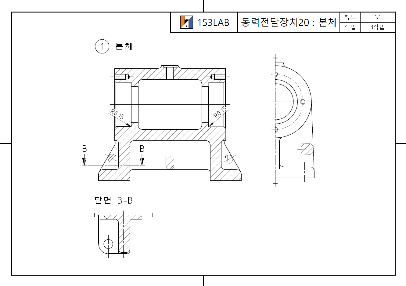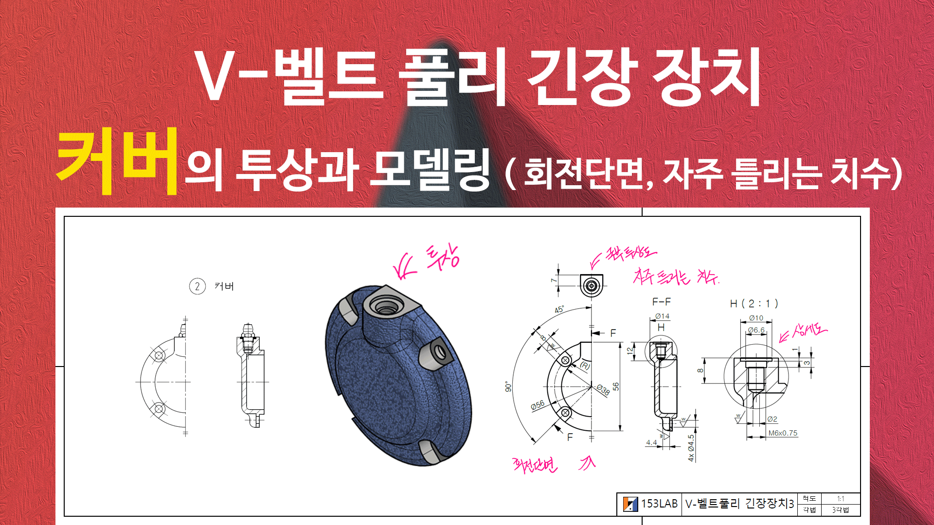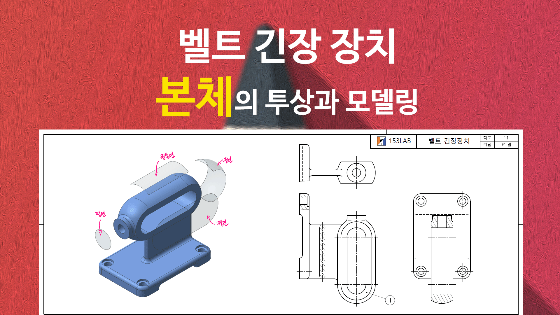 벨트 긴장 장치 - 본체의 투상과 모델링