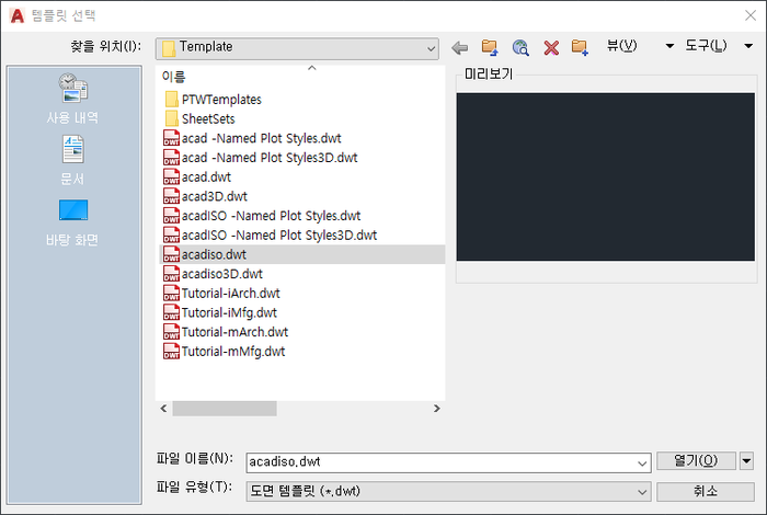 오토캐드 템플릿 만들기 ( 1 ) - 설정: 레이어설정, 치수스타일, 문자스타일 설정 일반기계기사, 기계설계산업기사, 전산응용기계제도기능사 실기 시험을 준비할 때 필요한 템플릿(원형도면)을 만드는 방법에 대해 알아보겠습니다. 1. 새로 만들기 AutoCAD를 실행한 후 새로 만들기 (Ctrl + N)을 누르고 파일 유형은 템플릿에서 acadiso.dwt를 작업의 원형도면으로 선택한다. 2. 레이어(Layer) 설정 la (layer의 단축키) 엔터를 입력하여 레이어 설정창을 띄우고 기본 레이어(0) 외에 아래와 같은 8개의 레이어를 만든다. 외형선, 가는 실선, 숨은선 레이어는 인벤터와의 빠른 변환을 위해 인벤터에서 사용하는 이름과 같이 만든다. (외형선 > 외형선(ISO), 가는 실선 > 좁은 외형선(..