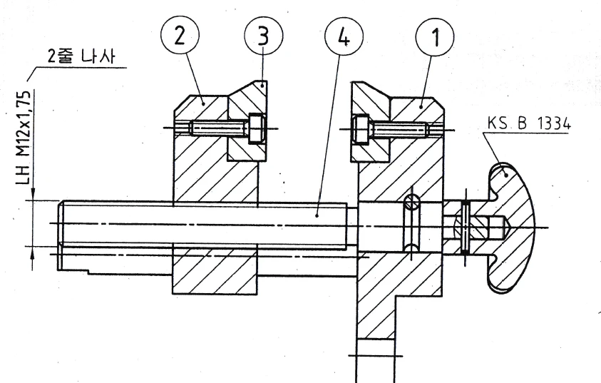 나사의 표시 방법 나사산의 감긴 방향 나사산 줄의 수 나사의 호칭 - 나사의 등급 1. 나사산의 감긴 방향① 나사산의 감긴 방향은 왼 나사 일 때 "왼" 자로 표시 또는 "L"또는 "LH"를 사용 왼 M10x1 L M10x1 (LH M10x1)② 오른나사일 때는 표시하지 않는다. M10x1 2. 나사산의 줄의 수① 한 줄 나사인 경우 표시하지 않는다.② 여러 줄 나사인 경우 "2줄", "3줄" 표시 또는 "2N", "3N"을 사용2줄 M10x1 2N M10x1 3. 나사의 호칭법① 나사의 종류를 표시하는 기호, 나사의 지름을 표시하는 숫자, 및 피치 또는 25.4MM(1")에 대한 나사산의 수를 사용하여 나타낸다. 나사의 종류를 표시하는 기호 ..
